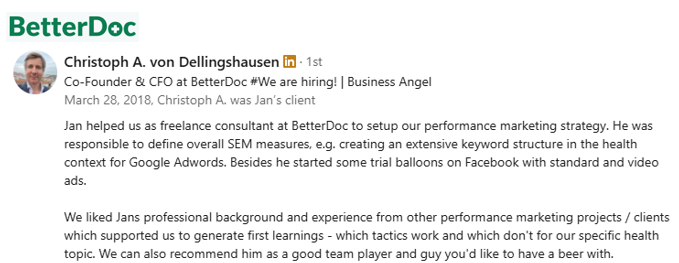 Alle LinkedIn Referenzen / All LinkedIn Recommendations:
